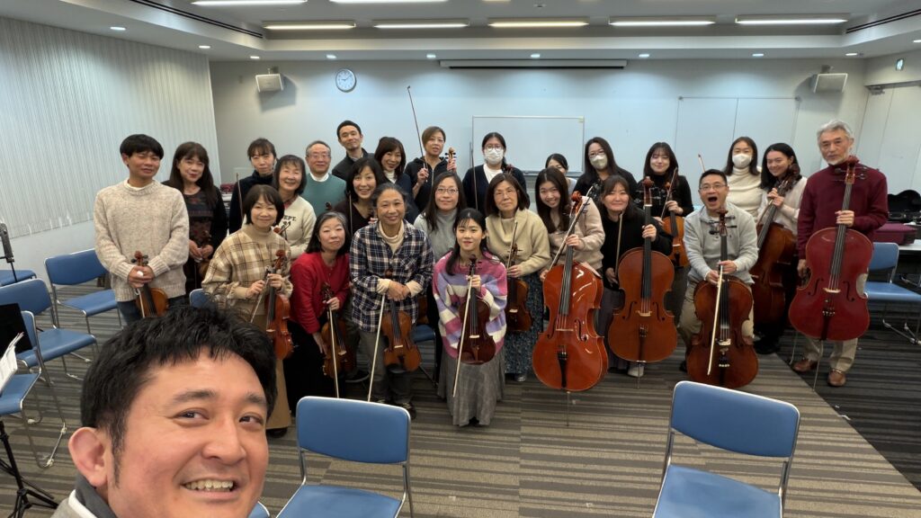 新年最初の練習会は、ファーストヴァイオリン+ヴィオラ、セカンドヴァイオリン、チェロの3組に分かれての分奏練習でした。筆者の属するセカンド組は講師なしで、ほとんど自主練のノリで不明な箇所、不得意な箇所の確認に費やしました。他の組の様子を聞くと、ファースト+ヴィオラ組では新任の村田先生が、チェロ組では現役音大生の<あみちゃん先生>こと小原先生が講師を務められたとのことです。